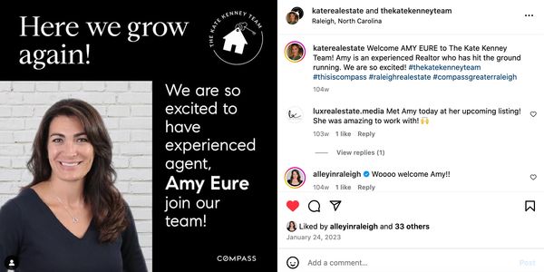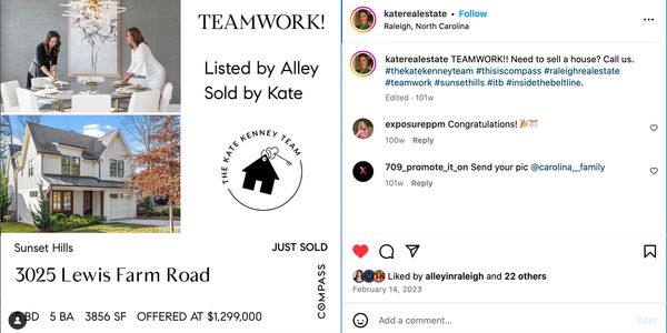 Micah showcased a post featuring a property listed by Agent Alley and sold by Kate. The post highlighted the successful collaboration between the two agents, celebrating the sale and showcasing the property’s appeal, further reinforcing the team’s expertise and success in the market.