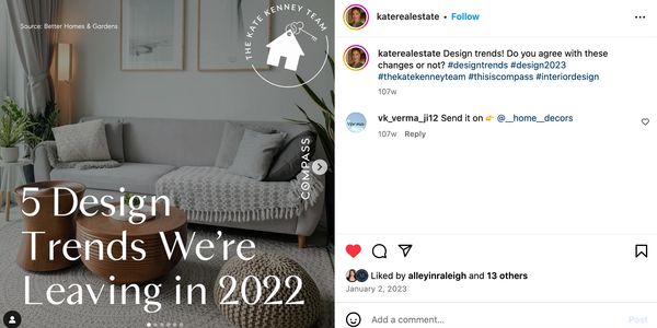 Micah helped Kate create a post that showcased the design trends staying in 2022 and those making their exit. The post sparked conversation and engagement, offering valuable insights into the evolving design landscape and positioning Kate as a trusted expert.