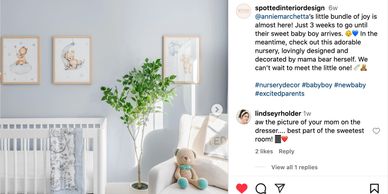 Micah created a post for Spotted Interior Design, spotlighting the beautiful interior design of her client's nursery. The post garnered impressive engagement, with 94 interactions, including 76 likes, 12 comments, 3 shares, and 3 saves, showcasing the nursery's thoughtful design and sparking conversation among followers.