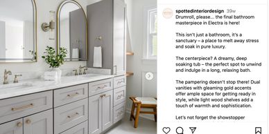 Micah created a post showcasing the final bathroom masterpiece in Electra, highlighting it as a sanctuary designed for relaxation and luxury. The post featured the dreamy deep soaking tub, dual vanities with gold accents, and light wood shelves, emphasizing the bathroom's elegance and sophistication. It garnered 53 interactions, including 38 likes, 9 comments, 5 shares, and 1 save, generating strong engagement and excitement among followers.